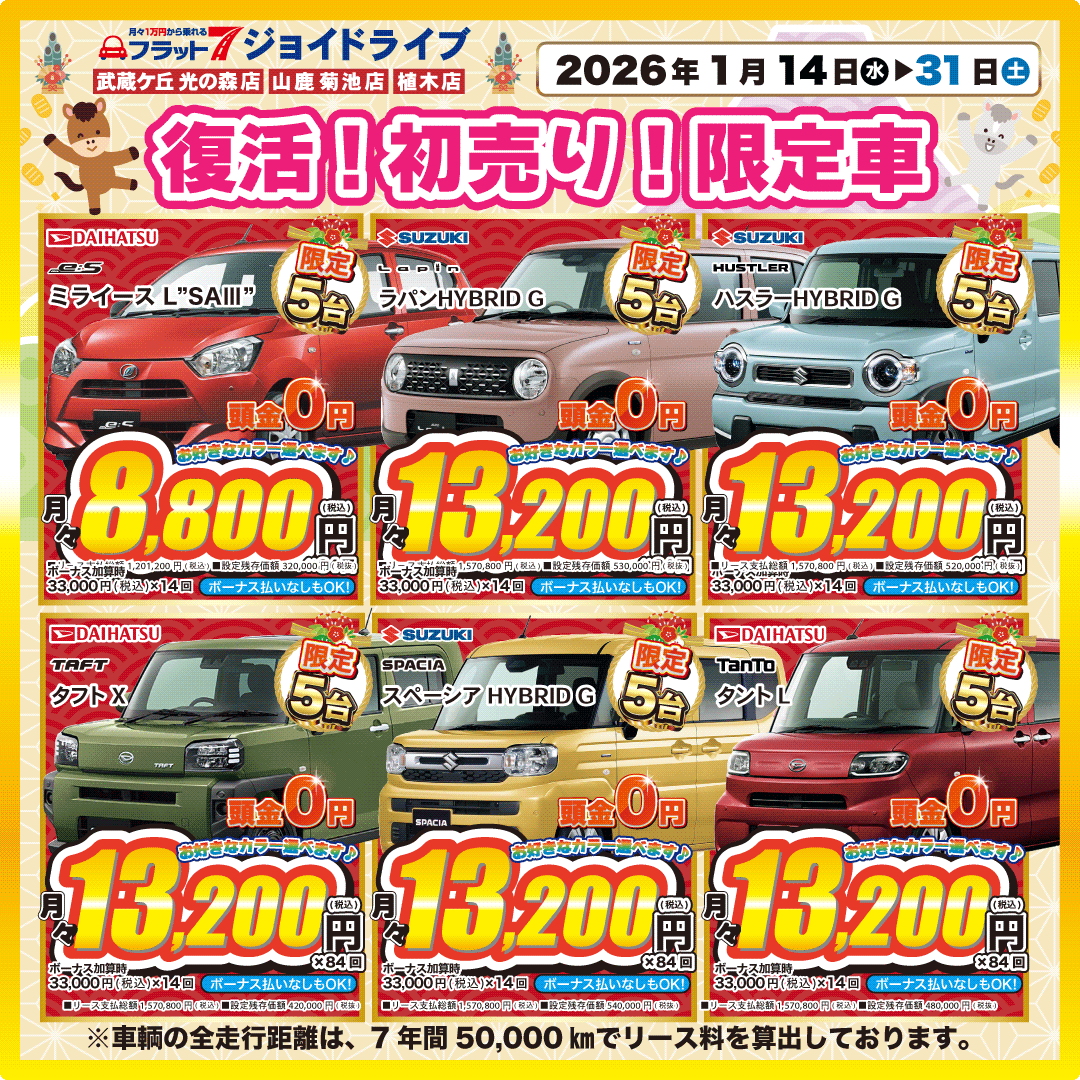 月々定額1.1万円(税込)で乗れるカーリース専門店フラット7ジョイドライブ。