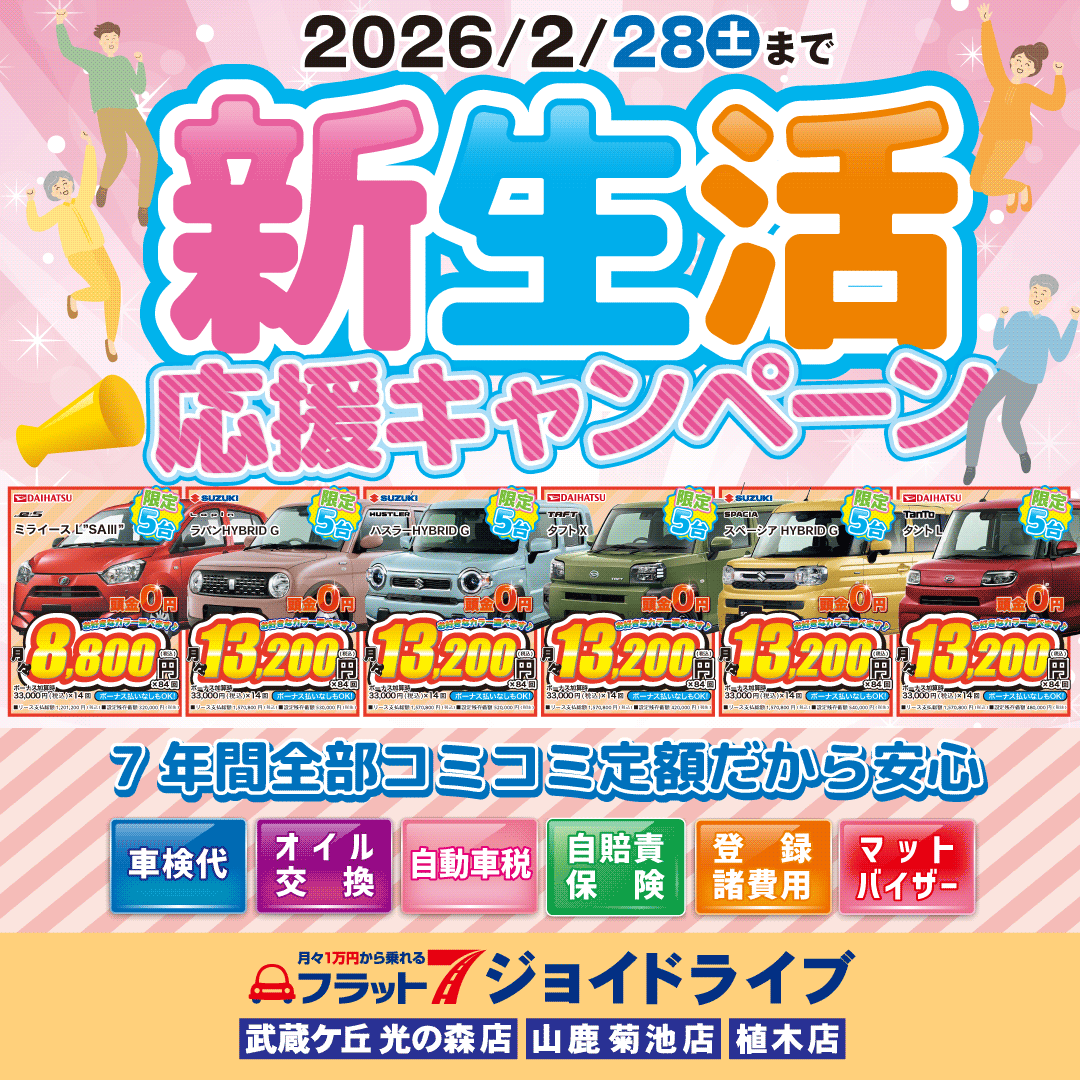 月々定額1.1万円(税込)で乗れるカーリース専門店フラット7ジョイドライブ。