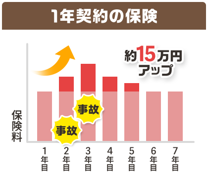 通常の保険では、事故を起こせば等級が下がって保険料が上がります。(2013年3月31日以降の契約の場合)しかし、カーリースの長期保険ならリース期間中に事故を起こしても等級の見直しがありません!カーリースで契約した保険なら、保険料は定額です。