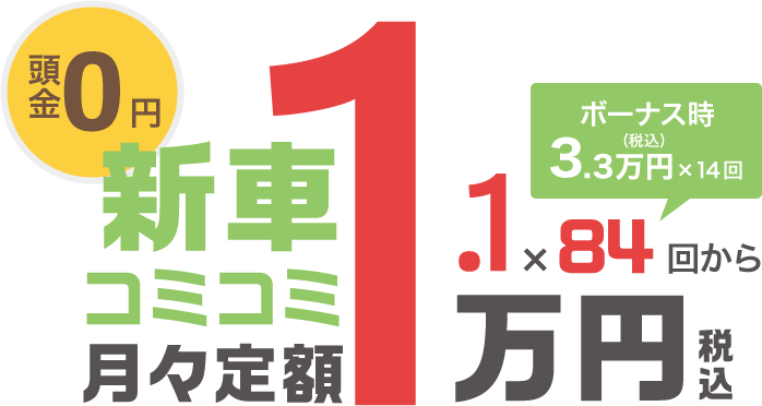 カーリースとは、毎月定額払いで新車に乗れるリースプランです。毎月のお支払い料金はお選びいただく車種や契約期間、ボーナス払いの金額設定、オプション設定などにより設定されます。